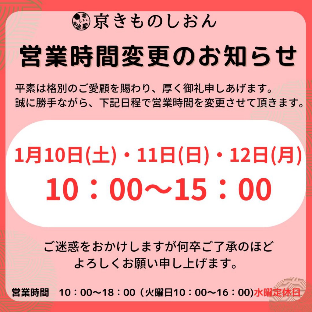 誠に勝手ながら、営業時間変更を下記のとおりとさせていただきます。