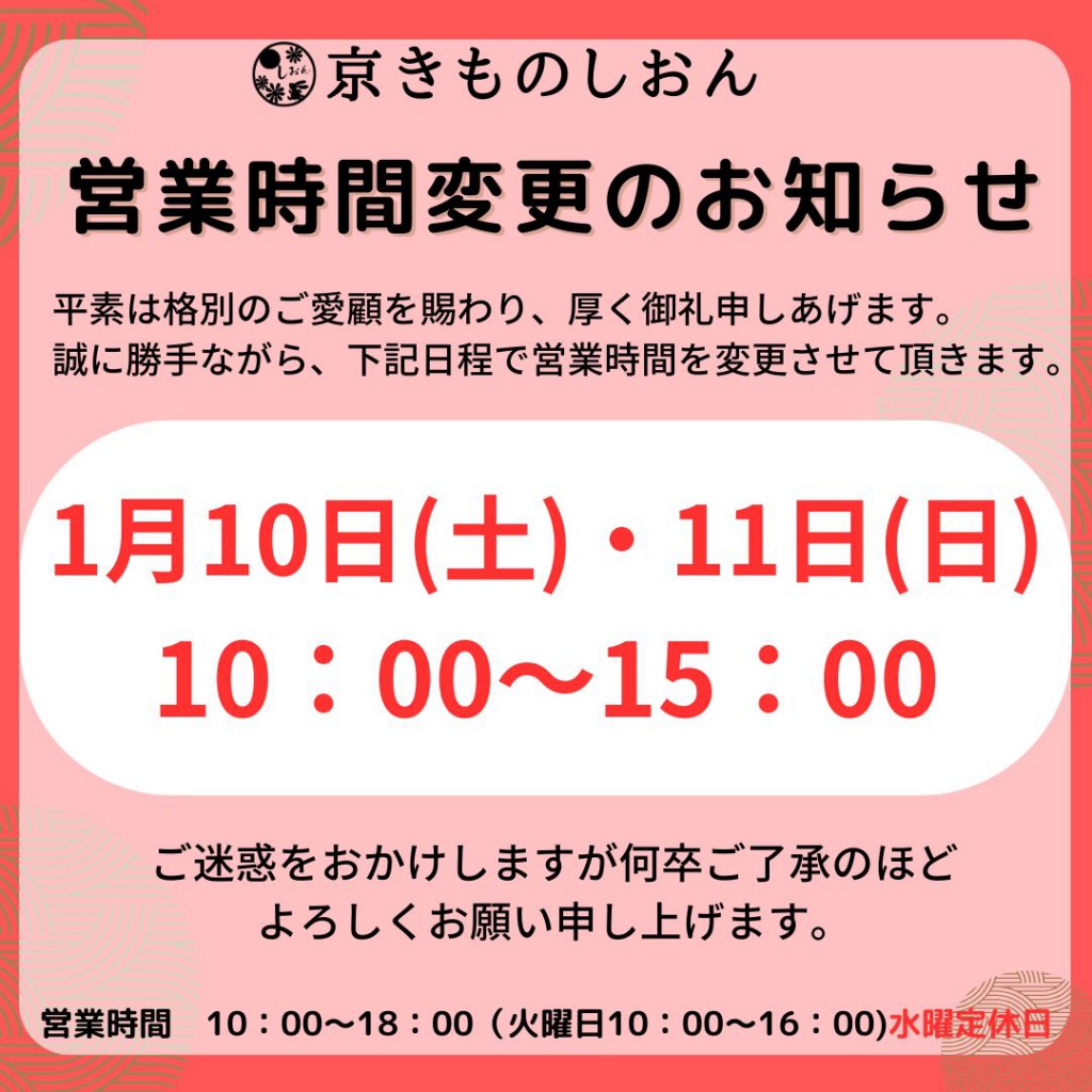 誠に勝手ながら、営業時間変更を下記のとおりとさせていただきます。